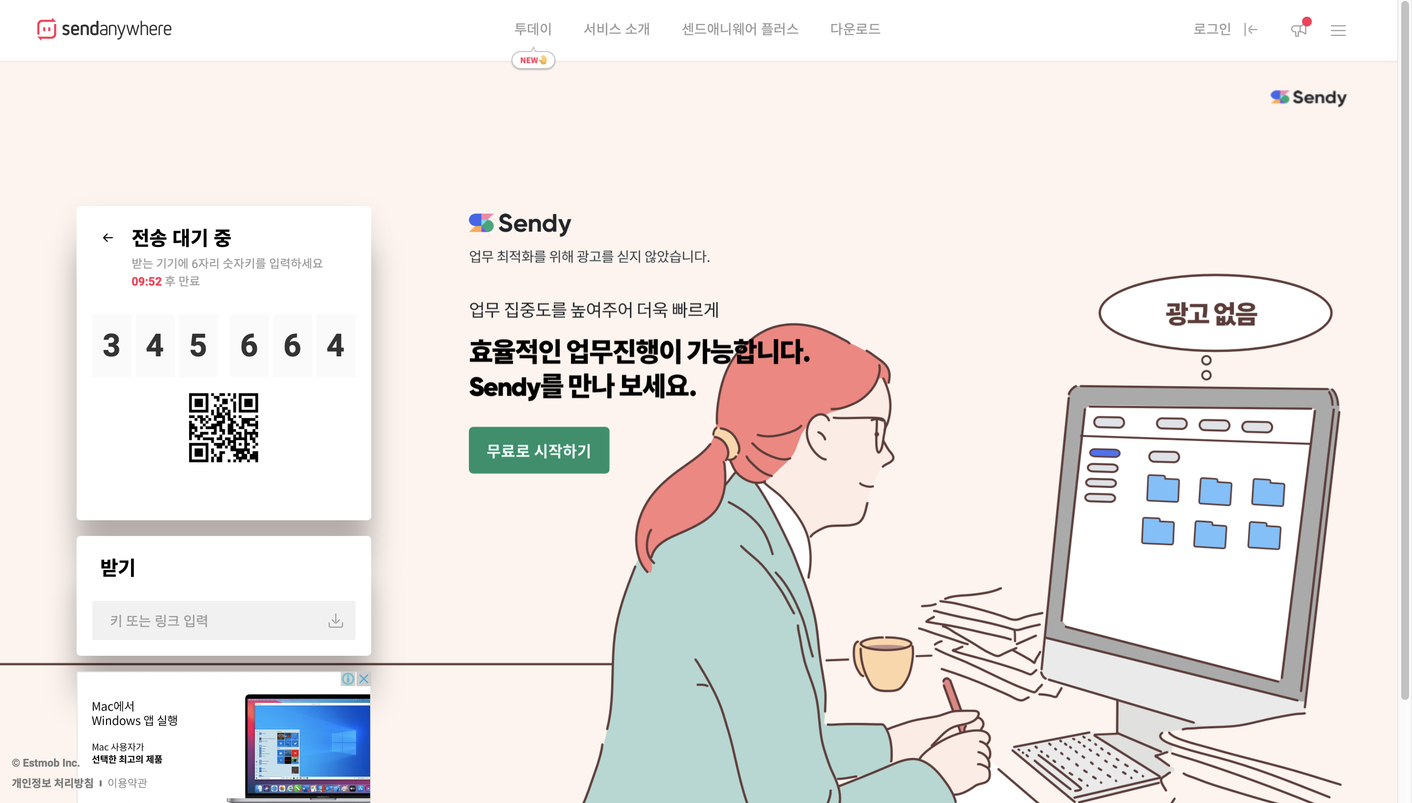 1.2.2 샌드애니웨어(Sendanywhere) 사용법 - 받기 - PC