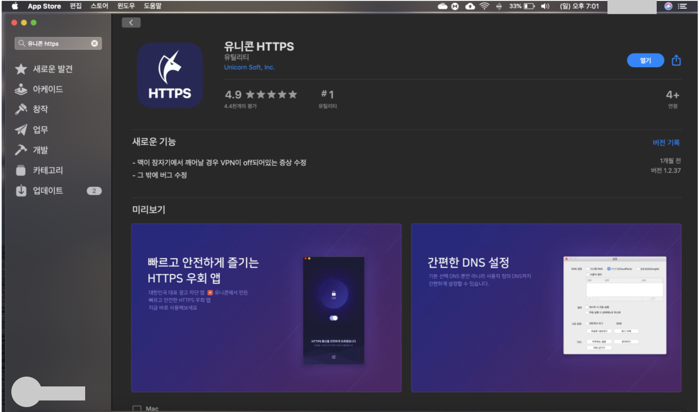 제가 가장 추천하는 방법입니다. 이 앱은 vpn이 유료 급입니다. 설치방법은 Mac용 App Store에 들어가 줍니다.