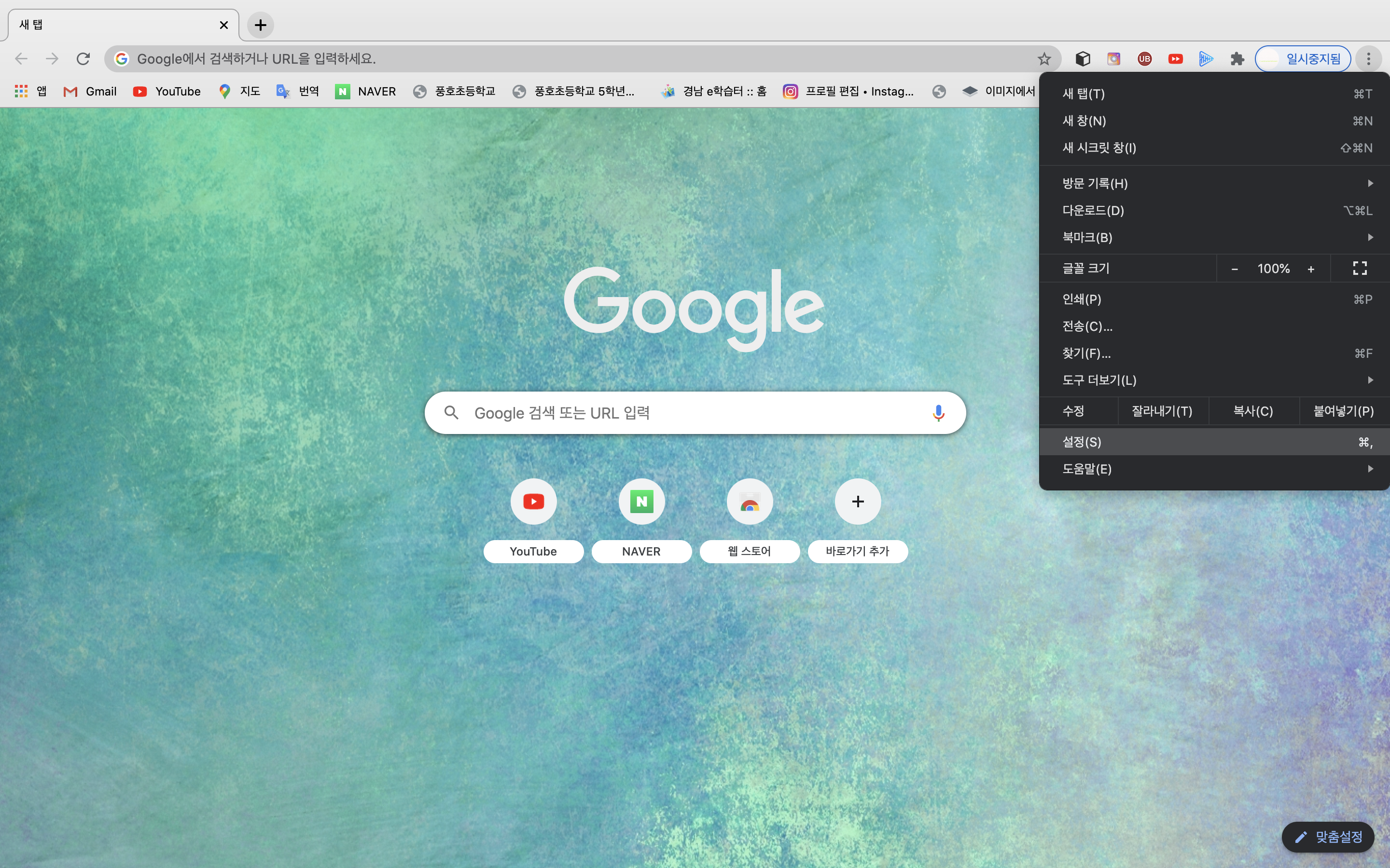 우선 크롬을 실행시켜 줍니다. 오른쪽 상단 세로 삼줄을 눌러주시고 설정을 눌러주세요.