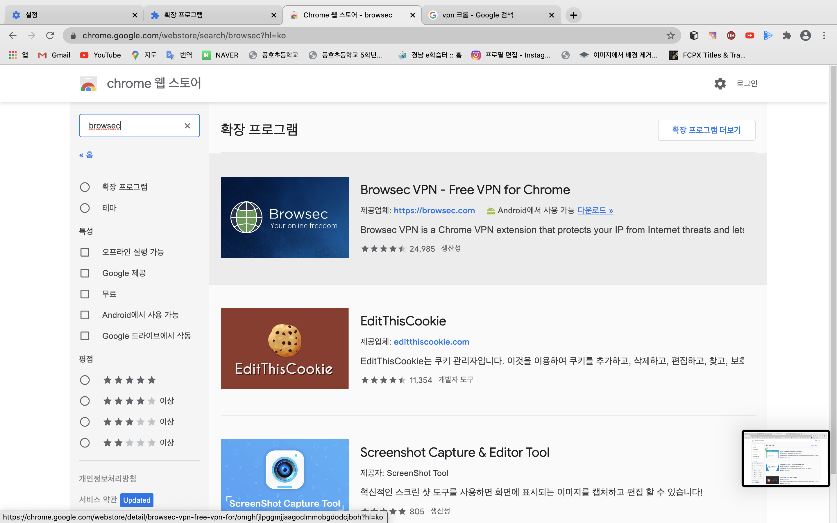 검색창에 browsec 버튼을 눌러주세요. 그리고 검색해주세요.